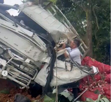 La Vega, Constanza.– Un accidente de tránsito se registró este domingo en el kilómetro 5 de la carretera Casabito, donde un camión cargado sufrió un fuerte impacto que lo dejó con daños considerables.