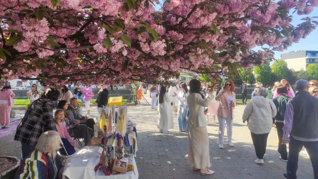 Algunos visitantes continúan también hacia Mukachevo, otra ciudad donde cientos de cerezos sakura bordean el paseo junto al río y las calles históricas.